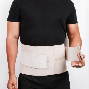 Faja elástica transpirable con cuatro ballenas posteriores, puntos de silicona en el interior para evitar el deslizamiento, bandas elásticas de tensión graduable, sistema de doble cierre.